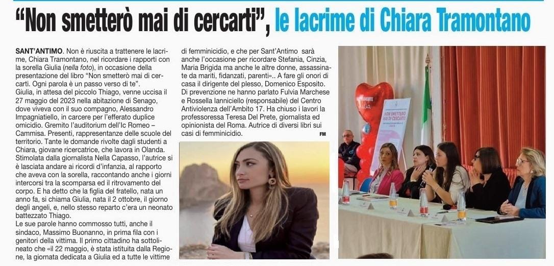 - "Non smetterò mai di cercarti", Chiara Tramontano ricorda Giulia.